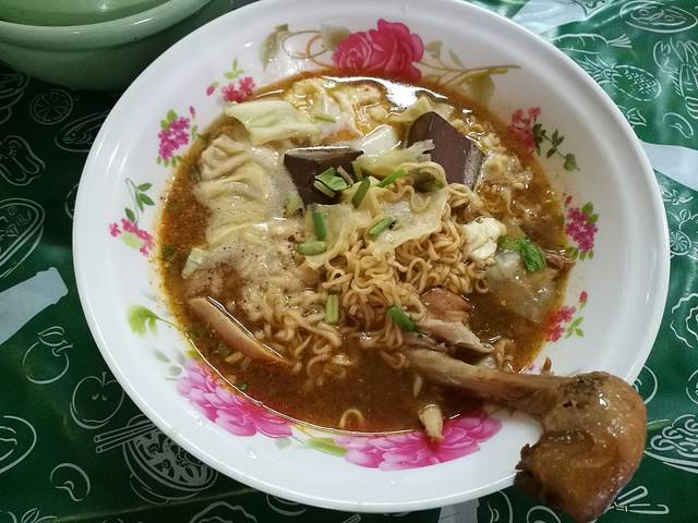 青旅门口的路边小摊,晚上光线不好。一碗40B。