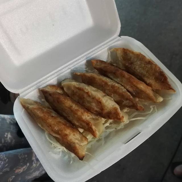 煎饺,里面包着鸡肉,下面垫着包菜,也很香~40B6个,60B6个。