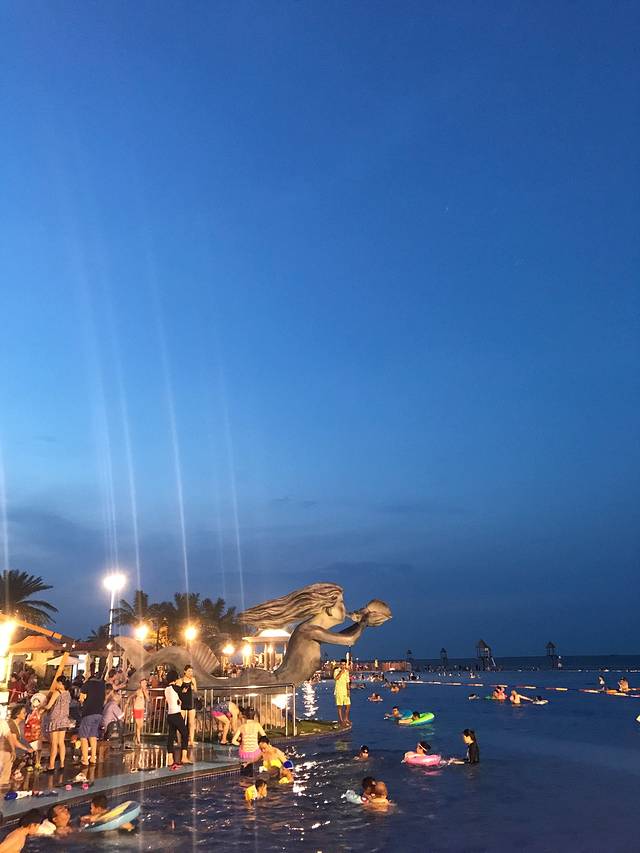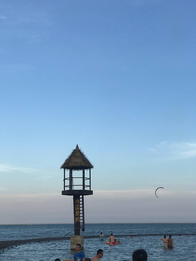 傍晚等太阳下了山,我们就带着孩子往海边跑,事实证明还是明智的选择,到达海边正好没太阳,小孩子往水里一泡,暖暖的,我就站在沙滩上吹吹风,挺凉快的!