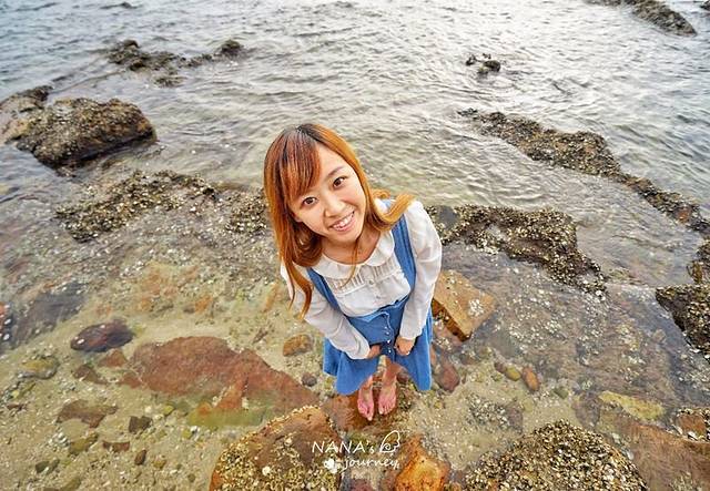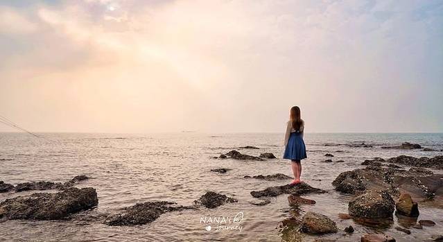 不畏礁石,我也翻到了最外面的石头上看日落的光晕