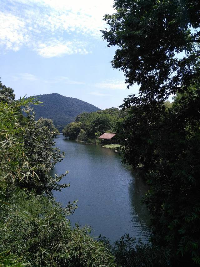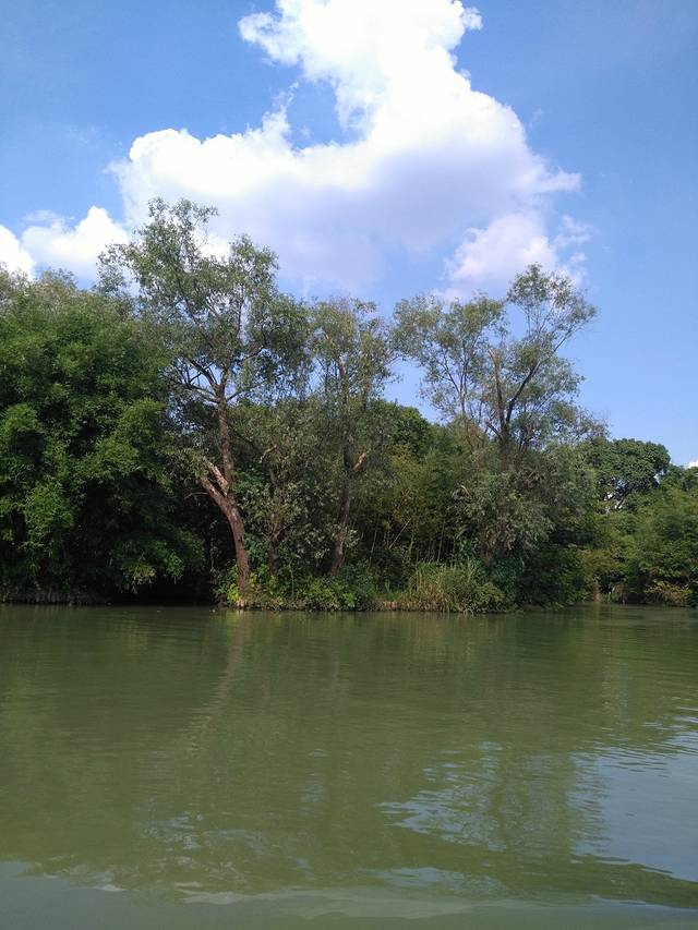 看完浙大,饭都没吃,直接跑向西溪湿地公园去了。到了公园售票处,买好门票,直接进去了。不过那时候正值下午一两点,太阳最毒,而且我还没吃午饭,同时我又是从东入口进的(东区是免票的,而且也没什么游人),所以一个人越走越深,有点害怕,最后差点中暑了。不过还好,一直坚持着,再难的关也得挺过来。最后到了西区,人还是不少的,然后便是坐船游西溪。船上看到的景色还算不错,只是电动船票要60,摇橹船票一小时要100,并且学生票都没有优惠,所以感觉挺贵。西溪夏天的水很浑,而且放眼看去只有一片绿色,因而个人感觉不是很美,也不是很喜欢西溪吧!虽然很饿,但是河渚街一条吃的都没打动我,我怕价格太贵了而且不好吃(实际价格和味道怎么样我并不知道,所以还是得提前好好做攻略啊),景区内的饮食真心不敢碰。在西溪坐着船,我忽发奇想,在这里看日落一定很美,然后我便拖延离开西溪的时间,可后来一是找不到好的看日落的地点,二是日落太迟了,要等好久,三是我又准备去看西湖的日落(一个人想怎么样都行,自由的感觉真好),于是最后还是放弃了西溪的日落。