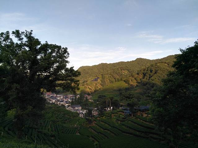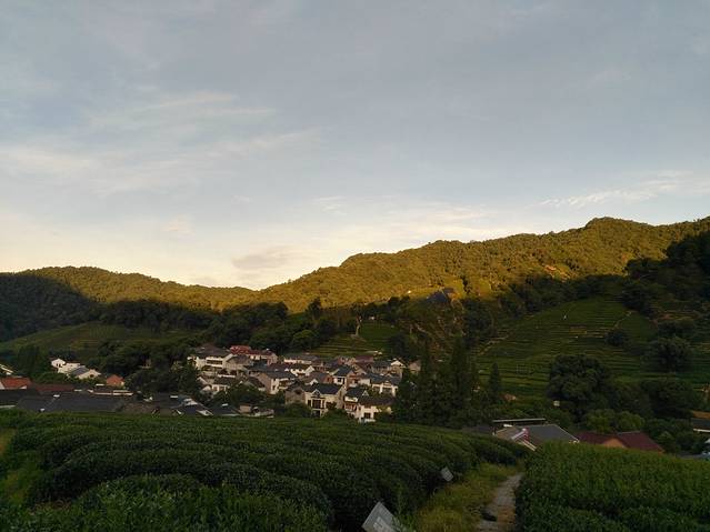 这家旅店在梅家坞村,不过交通还算方便,他家就在一个公交站台旁边。背后即茶山,风景优美。我今天晚上谋划着好好休息一下,然后准备明早五点起来到茶山上看日出。十二点才睡,五点就起,自己都有点心疼自己了😀。