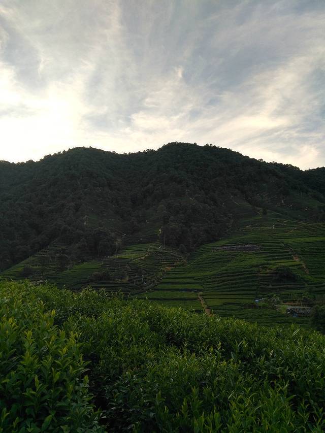 怀着无比期待的心情,五点十分我就起了,然后洗漱完后大概五点半我就上了茶山。因为我住的是民宿,所以推开主人家的后门,我就直接见到了另一番洞天。 茶山上,清晨的空气无比清新,阳光那时候也已经洒满了一面的山坡,与此同时另一面山坡还露着凌晨的暗色。我想要一直往高处爬,直到山顶,去看山那边的晨阳,然而山路崎岖,后面已无石板,我走到一半还是放弃了。茶山上茶农们已经开始了一天的劳作,而我年少力盛,却不敢一直往上攀登,说来真的惭愧!下次一定不放弃了!但愿每一次旅行后,我都能成为一个更好的自己!
