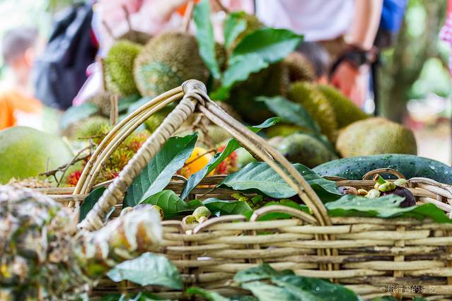 旅游巴士车载着我们一行来到热带水果园,对于这边的水果总是很向往。
