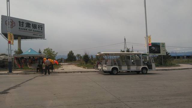 工业园区路口有专门的电瓶车,可免费将游客送至方舟(这里介绍下,去往方舟可以有三种方式:1.自驾,开车从市区出发,国道227线,行至民乐生态工业园区内;2.背包客,市内有定点大巴,可直接搭乘至方舟,具体时间后面介绍;3.从市内搭乘去往民乐县的班车,在工业园区路口下车,换乘上图电瓶车,前往方舟)。