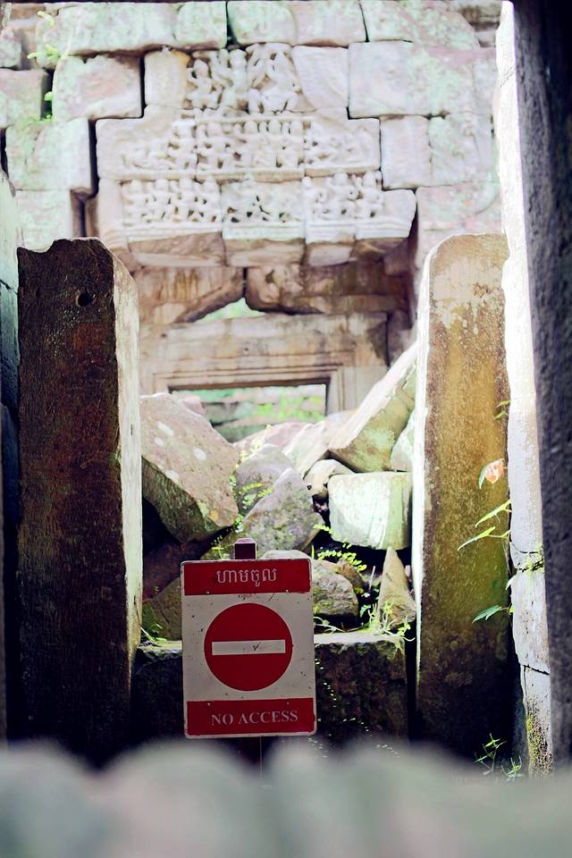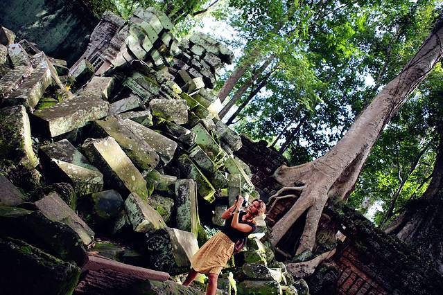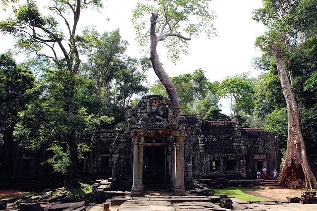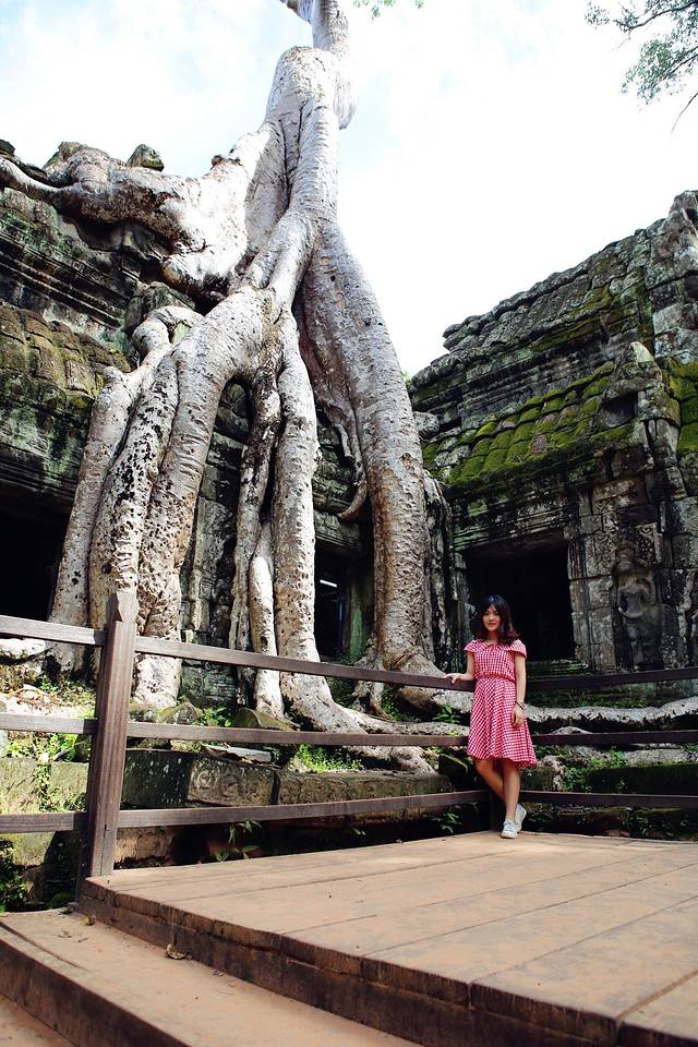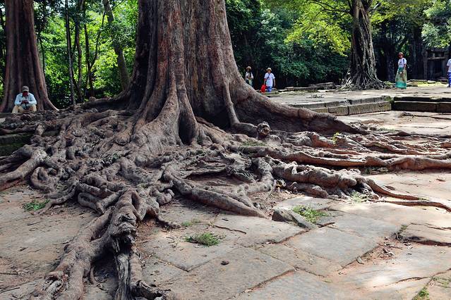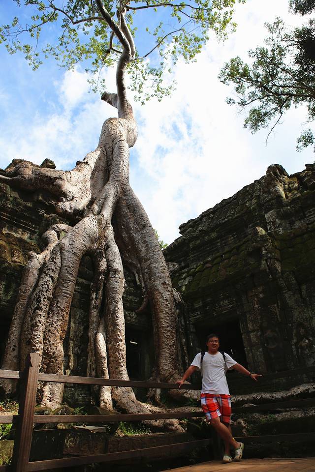 本该非常宏伟的寺庙现在却被一棵棵大树垫在了脚下。也许也只有这么巨大的自然力量才可以与佛抗衡。这些树根花了几百年的时间,缠绕着;穿透着被认为是牢不可破的石塔和回廊,缓慢的包裹着;埋葬着寺庙,吸引着众多人的驻足。