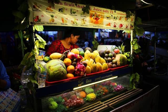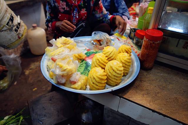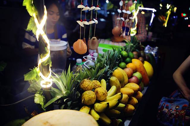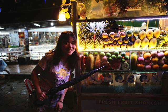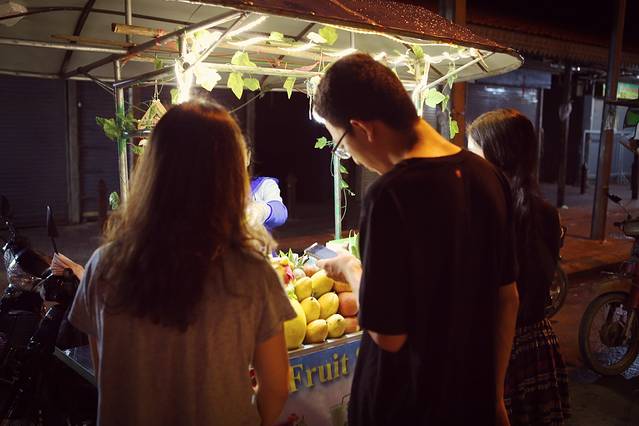 到了第一天我们买果汁的那一家,那个笑容灿烂的姑娘,她已经认识我们了,她说今天她刚刚进的榴莲,要不要尝尝,就是2美金,榴莲进价比较贵,她说她进的榴莲6美金一公斤,估计是比我们的好吧。