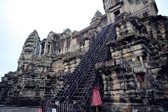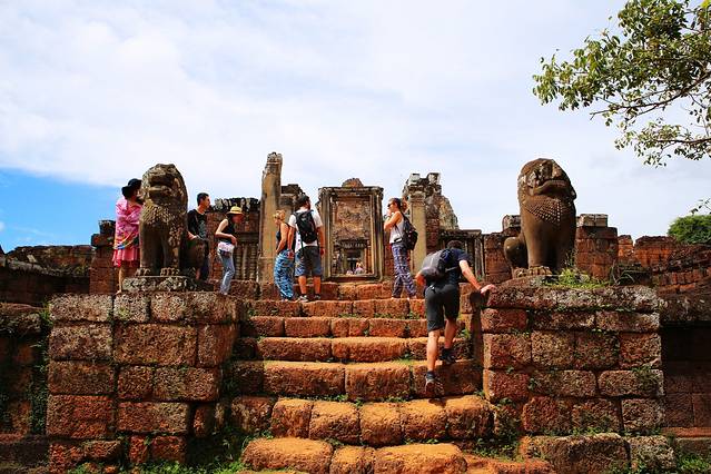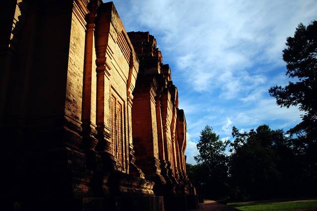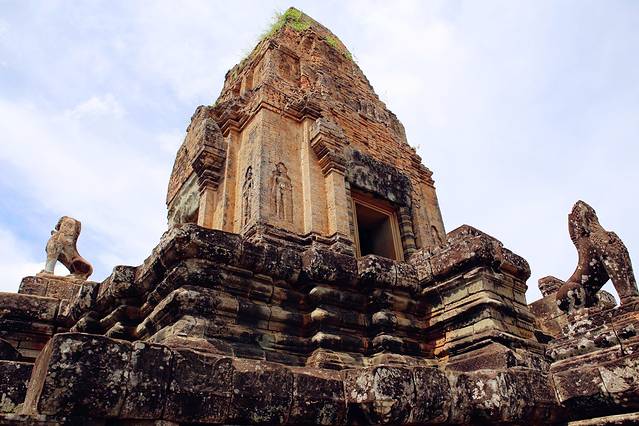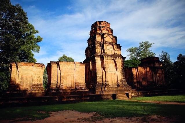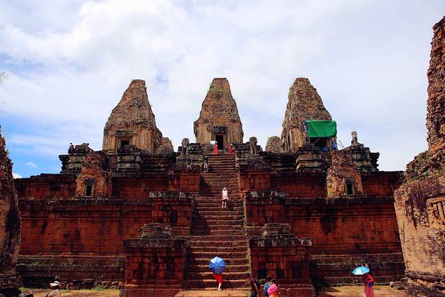 比粒寺是进行火葬仪式的地方。 比粒寺(PRE RUP)为古代皇族火化变身为神之神殿,又称变身塔。可以看到烧焦过的痕迹,千年前在此举行仪式,不能随便进入的。是典型塔山建筑,基座上建造砖塔。它的结构与塔松寺(TA SOM)很相似,因属红砖结构,在夕阳照耀下泛着暖暖的红; 加之这里开阔的视野,吸引着一些游客在此看日落。