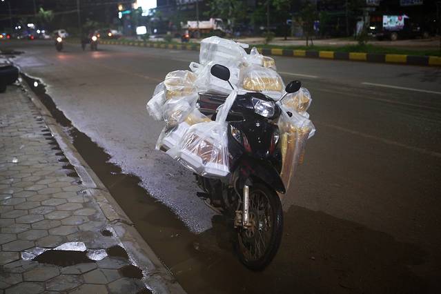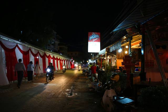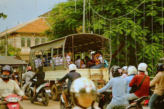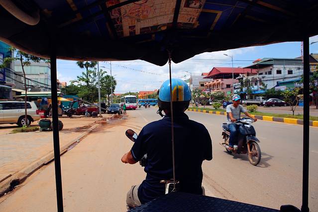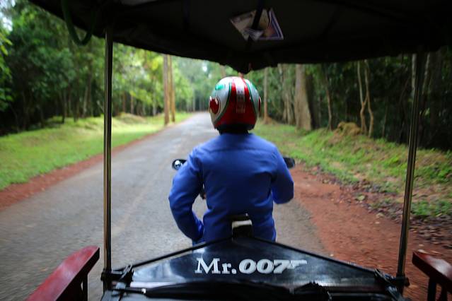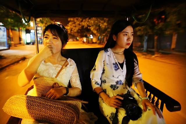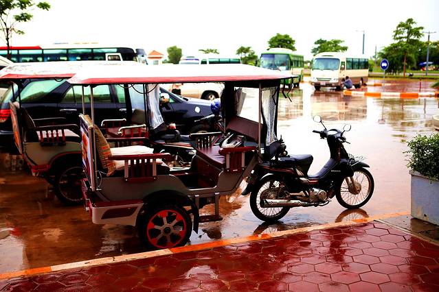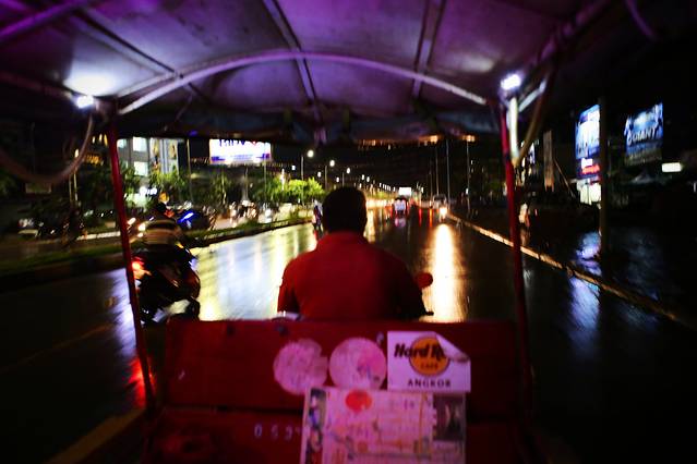 我们行程的第二天计划早上看日出,四点半就起床,真的好累,我们睡眼惺忪,拖着疲惫的身体和007碰头,谁知,在路上看到电闪雷鸣,心情瞬间down,杨先森和阚小力都说要不回去吧,这天气肯定看不到了,哎,雨季就是这么悲催,昨天的洞里萨湖日落没看到,今天的日出也泡汤了,007于是带我们回去了,路上还有很多TUTU车经过,也有几辆折返