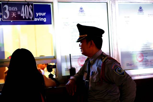 出海关的时候,大家不要怕,知道柬埔寨的海关对中国人要小费的恶劣态度和行为,我们不能软啊,尤其是年轻人,怕什么,他们一没给我很好的服务,二没对我很好的态度,我凭什么给小费,真是奇了怪了,海关对我说小费,我不理他,他用厌恶的眼神看看我,然后指着我入境卡中的空白处让我去填,ok,我去填,回头再来,又是“小费小费”地乱叫,又是举起一美金的纸张给我看,我还是瞪着他,不给啊,拖了一会儿,他就让我过了,他还能怎么样,而且他们的动作幅度其实很小,估计也知道这么做不合适吧。这的确是被中国旅行团给惯坏的,我看到很多中老年团他们排队的时候就在自己的护照里夹了1美金,顺利过关,哎,只能叹气,也不能全怪阿姨妈妈们,毕竟出来玩就很不容易了,还语言不通,能用钱解决的事情,自然不会再自找麻烦。