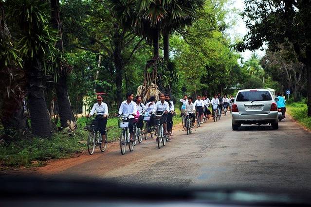 车上看到暹粒学生都骑着自行车,穿着白色的校服,青春洋溢,满满的复古风出现啦~