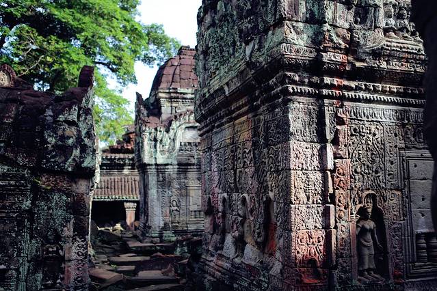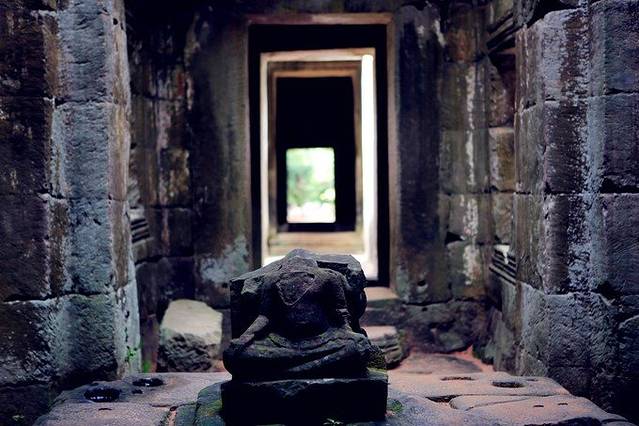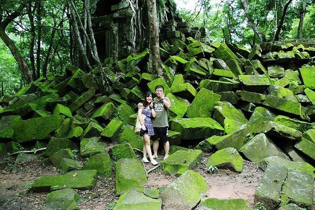 这座印度庙宇是用来供奉湿婆神的,是吴哥建筑群第一座完全用沙石建筑的庙。这是一座破败、隐秘,未经修缮的寺庙,这座神庙从来没有完工,原本应该有浮雕的寺墙上都空空如也。正由于它的原始风貌,有人说这里是吴哥遗迹群中最值得去同时也是最难前往的遗迹。