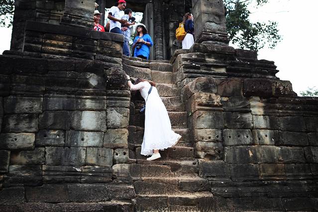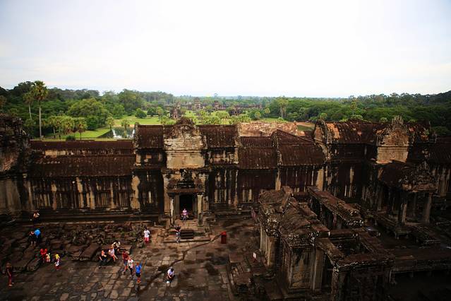 最终天一下就亮了,没有太阳,人群散开,我们俩便进了吴哥寺,想着去那最高的地方,俯瞰这个宏伟的寺庙。