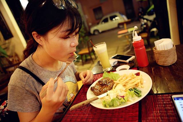 牛排就不说什么了,毕竟比不上王品的牛排。。。。呵呵呵,可是汁水还是有的,就光在柬埔寨这几顿来看,这个牛肉已经算做的不错的了。