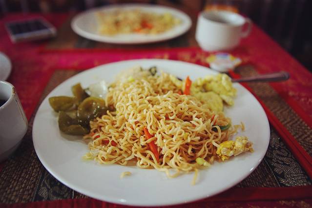 早上的自助餐说不上精致,但我也觉得挺好吃的。他们的抄方便面