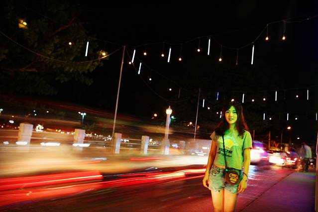 接下去又是一段。。。。我说我要拍大光圈夜景人像,高圆圆那种就好美的。。。。杨先森。。。。好吧。。。先来一张车水马龙,显然脸上绿莹莹的光好丑