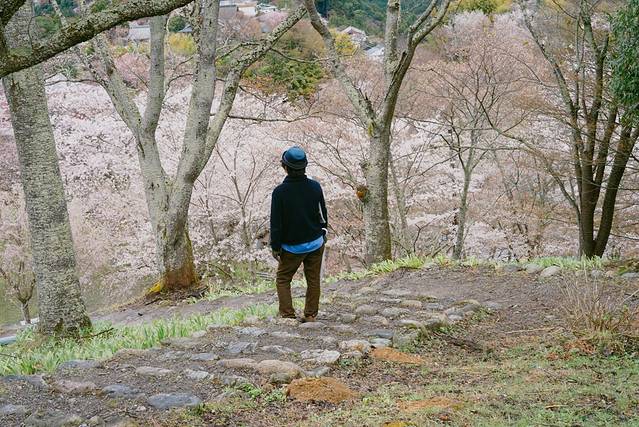 来吉野山赏樱,就该是这个范儿吧,一个人夹着一本书,看满山粉色浸染,有时候一幅画面会因为一个人而气氛不同