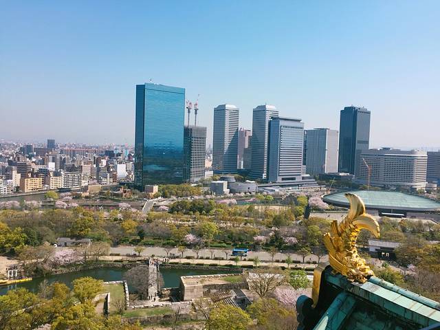 八楼的阳台可以眺望大阪市景,屋角的鳌鱼金光闪闪。