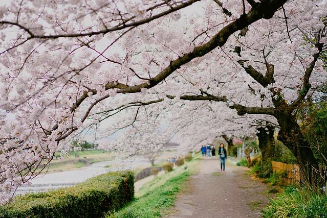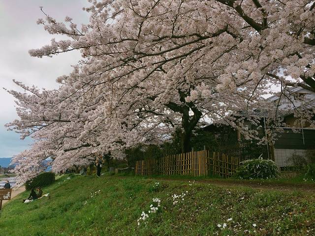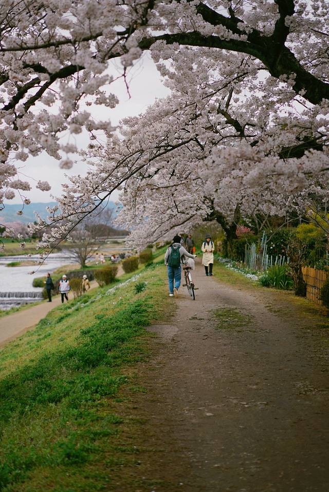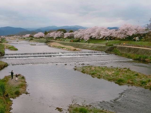 出下鸭神社就是鸭川,此时的鸭川正是最美之时,两边的樱花树如伞盖一样铺开,沿着河堤一路延展,花开得正是热烈之时,穿行于这条樱花隧道,这是进入了二次元的世界吗,如是个晴天,能在鸭川的河堤边坐下来,带一壶茶,过一个明媚的午后直到黄昏,那是多美的一件事