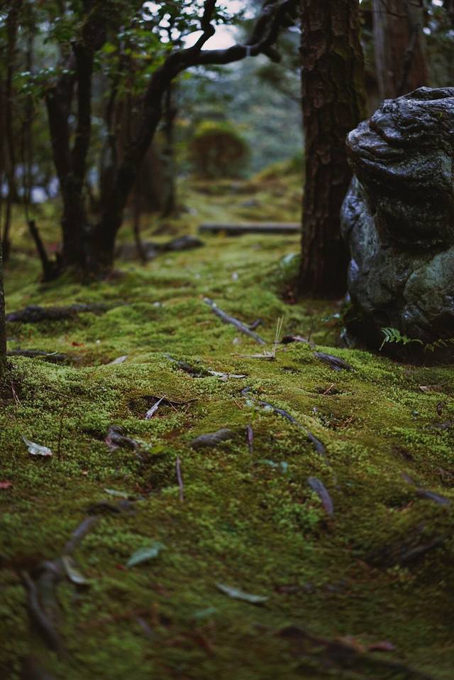 除了那些娇艳的花朵,庭院里的苔藓非常漂亮,尤其雨后,密密薄薄的一层覆盖,深深浅浅带着湿润,比起草坪更有韵味。