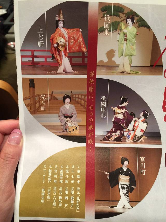 等待演出开始前,楼上的小型博物馆可以参观,展示了一些艺妓们的服饰,和一些名角的介绍,整个演出十分华丽,配乐现场演奏唱和,全程不可以摄像摄影,只给大家现场最好的感受,剧场里除了我们这些外国游客,一些日本观众穿着精致的和服前来观看,我们觉得日本的传统文化保留得非常好,很多时候在于日常他们所表现出来的仪式感,比如穿着正式来看一场演出。
