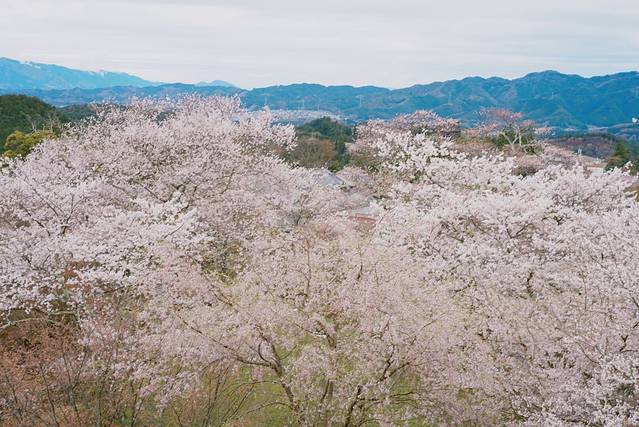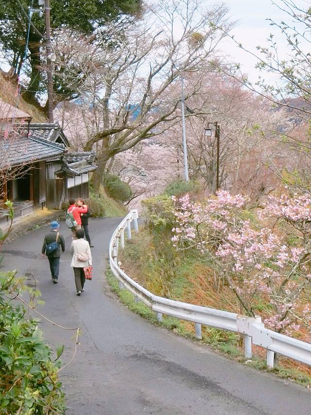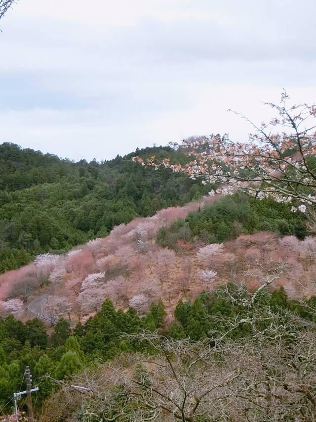 吉野山赏樱分为中千本,上千本,奥千本,由于高山气候原因,越往山顶樱花开得越晚,于是沿着山麓层层叠叠依次开放,满山的樱花树,被称为“吉野千本樱”,四月初来到这里,樱花只开在中千本和上千本,奥千本的花还只是花苞。