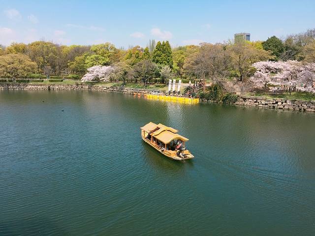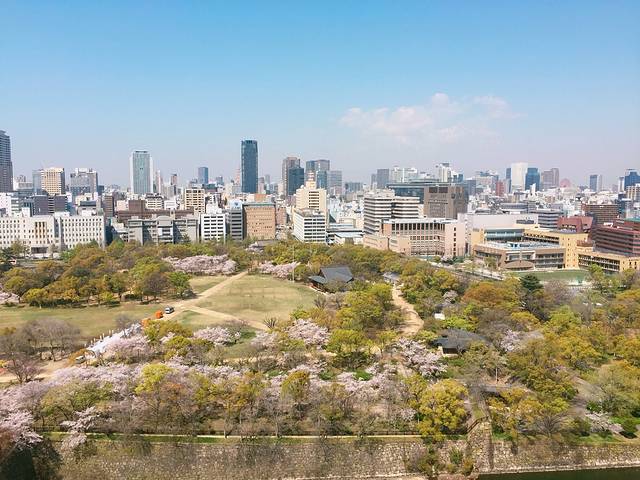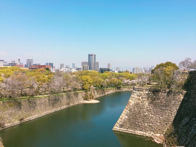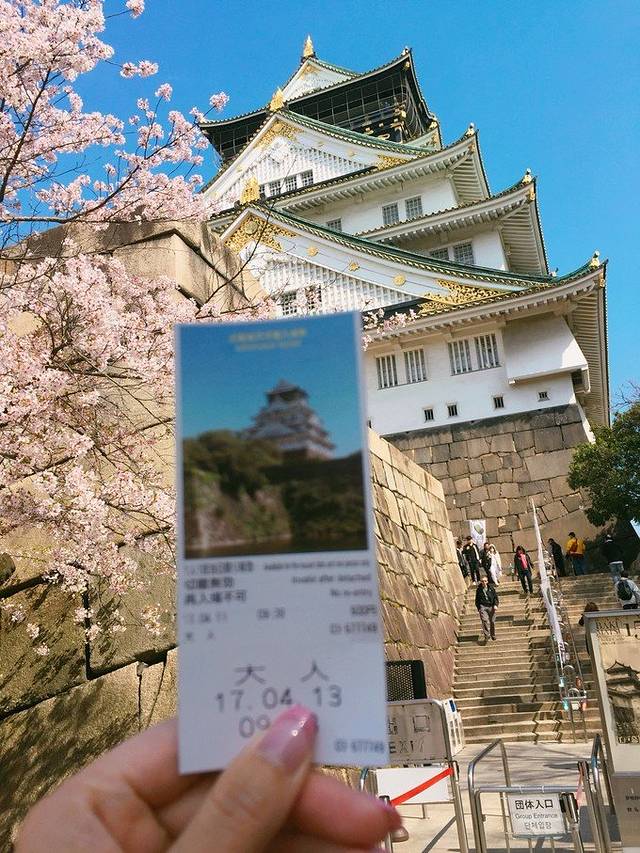 大阪终于阳光明媚,出地铁口,就能远远看到天守阁,阳光下的樱花格外娇艳。