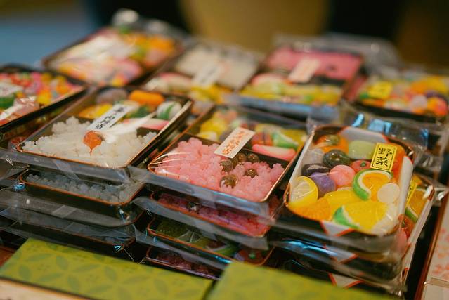 排队等位时逛进旁边一家伴手礼小店,日本对于形的要求很高,所以不管是娃娃还是糖果,都被制作的十分精致,樱花季推出的樱花糖,其实就那个味儿,但即便是一张纸也给折出了花来包装一盒简单的糖果,可谓十分用心讲究,外貌协会成员会很难把持住,为了个包装而冲动。