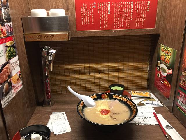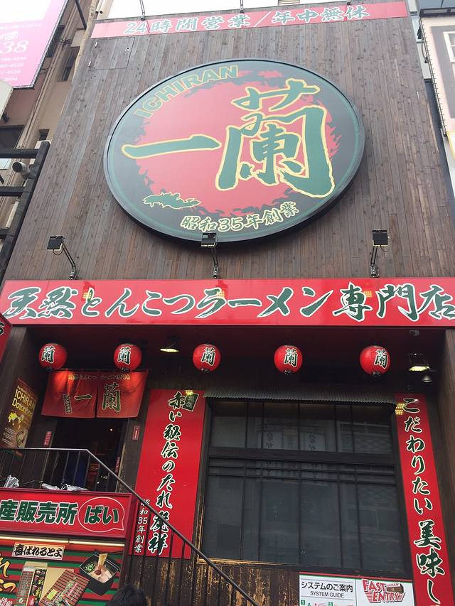 一兰拉面,其实我觉得和味千拉面也不是很大区别啊,只有豚骨拉面一种选择,当然一兰拉面历史悠久,来这里完全为了体验自助投币买面(当然其他拉面馆也有这种售卖方式啦)还有就是以隔板将客人隔开,服务员在帘子后面穿梭,看不到人脸,要什么都是小帘子后面传递,算是一个私密性的拉面馆子,适合单身来吃面,当然那么多游客的,也就是打卡地吧。24小时营业。
