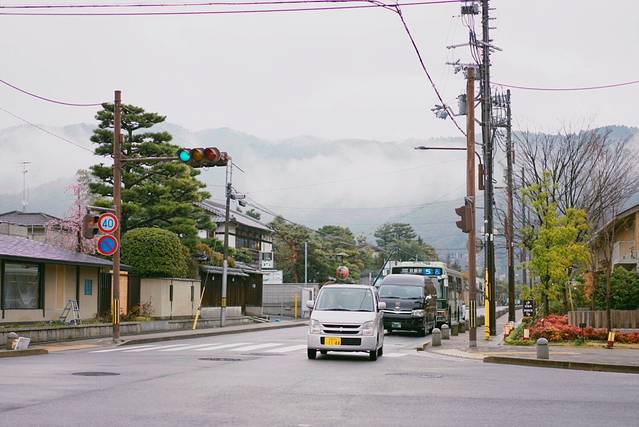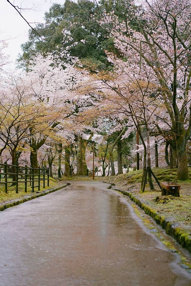 即便春雨不断,却不会觉得哪里泥泞,干净的街道,笼罩在山间的雾气,路边一排排可爱的樱花树,从平安神宫步行到南禅寺,路程不远,可是走进那些小小的街道,安安静静,日式的民宅,水渠里清澈的流水带着落差,哗哗地流动,会让人忍不住想脱了鞋子下去走一下,这一段步行实在是美妙。