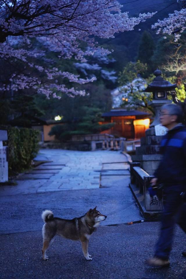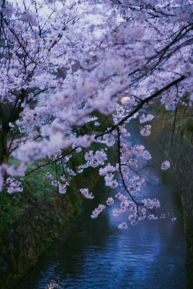演出结束,正是傍晚十分,附近便是大名鼎鼎的哲学之道,尤其是在樱花季节,下午经过时就远远看人潮汹涌,可此时的哲学之道退却了拥挤的游客,倒是安安静静,河渠两边栽满樱花树,一半探出河岸,一半掩映小道,橘黄的路灯下忽明忽暗,即便是那些小路也并未完全铺砖或变成柏油路,依然是旧时的泥沙小路,青石板的小桥一座又一座,就是这样的存在,似乎和不远处外面大马路上的车水马龙隔绝在不同的时空里。