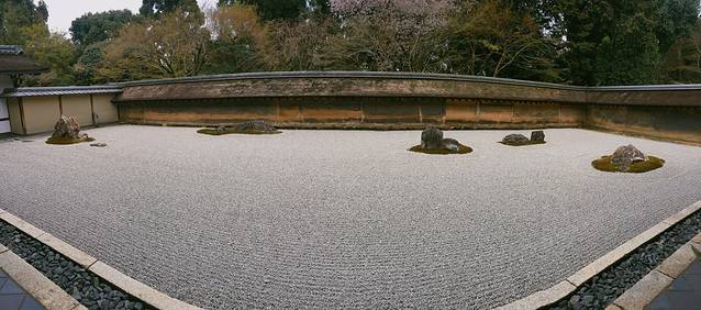 沿着金阁寺山道往上走不远,就是龙安寺,龙安寺不大,以庭院里的枯山水著名,很多游记提及,可我觉得由于离着热门景点金阁寺特别近,来的游客就会非常多,庭院的台阶上密密麻麻像看电影一样坐着一排排的人,这样如何去欣赏枯山水的禅意呢。