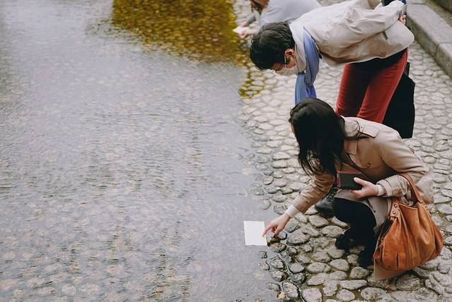 下鸭神社是京都最古老的神社之一,始建于公元8世纪,这里不是热门之地,一条纠之森的林荫小道,格外幽静,据说这片林地可以使谎言无处藏身,下鸭神社是求姻缘的神社,看他们虔诚求签后,签文似是遇水才显现,很是有趣。