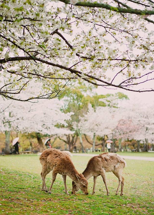 又是一个阴雨的天气,相比热闹的京都,奈良实在是个宁静的小城,从客栈步行出来变是奈良公园,春天的奈良公园美好得难以形容,绿色的草地,粉红的樱花,可爱的小鹿。