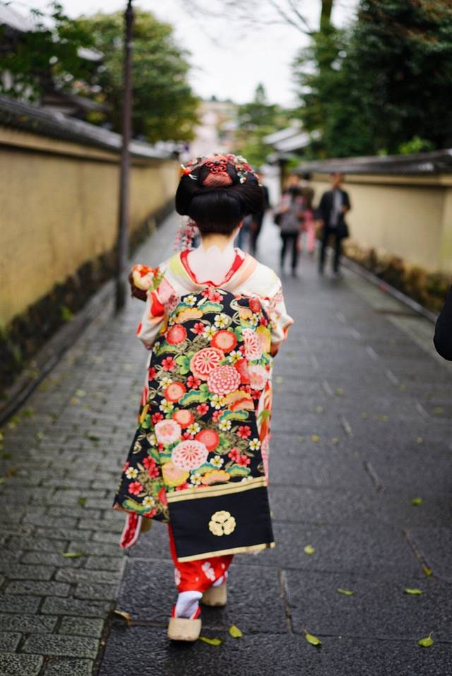 在祗园遇到一位真正的艺妓,华丽的和服,讲究的妆容和发型,优雅的身姿,就是一件活的艺术品。