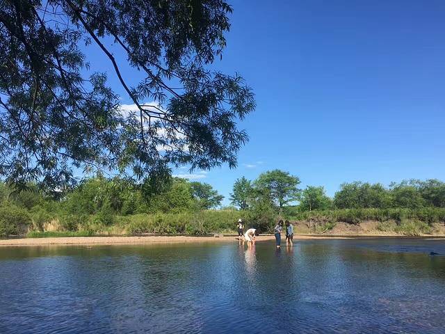师傅带我们到下面淌水,河水特别清澈,也特别凉,石头很硌脚要小心哦。在这里,我学会了用石子打水漂!