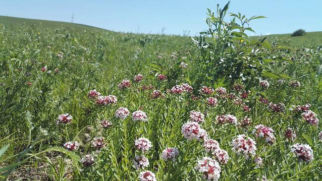 这边自然生长的芍药花很多,漫山遍野都开满了白色的芍药花,还有其他黄黄红红的小花……