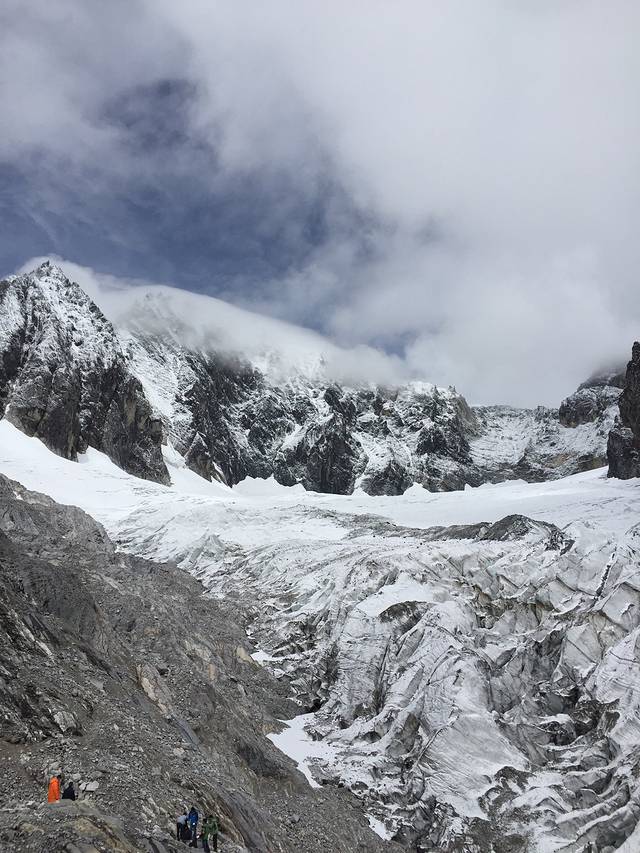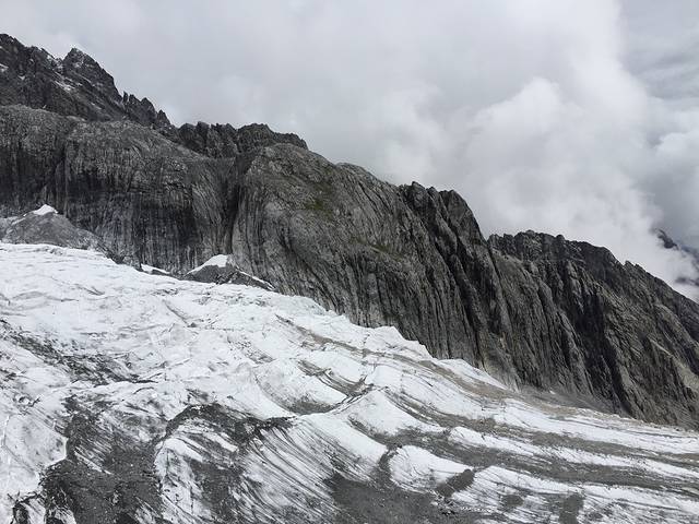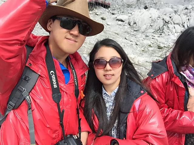 第四天我们也是在东巴客栈报的散团去的玉龙雪山和雪山脚下的蓝月谷~人均250左右,包括租的两件羽绒服和氧气瓶。因为前一天丽江下雨,所以可以在7月看到雪山上堆积的白雪。