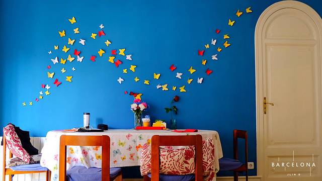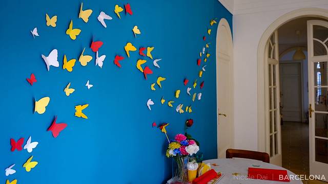 ▼最喜欢的部分,翩翩起舞的蝴蝶,非常童趣的设计…和桌上的鲜花、桌布的印花交相辉印…配上与圣托里尼、马拉喀什一卦的蓝色…哎哟满意满意,相当满意!(●ˇ∀ˇ●)