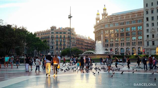在加泰罗尼亚广场转转悠悠,有点想到了魔都的人民广场...遍地的肥鸽摇摇摆摆地等着路人们喂食...