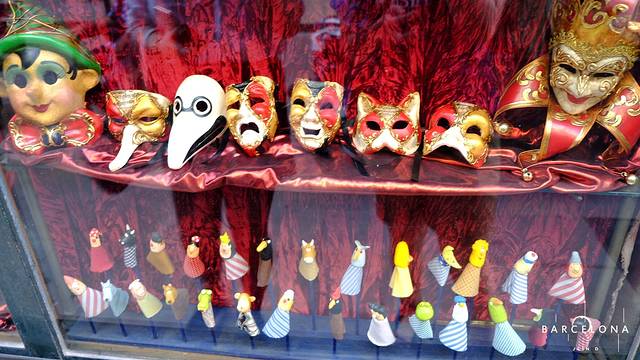 ▼橱窗里的拇指玩偶萌萌哒,面具有点威尼斯风...