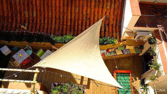 ▼从屋顶往下看...貌似是某户人家的阳台...还有桌上足球...那一排小靠枕好可爱...
