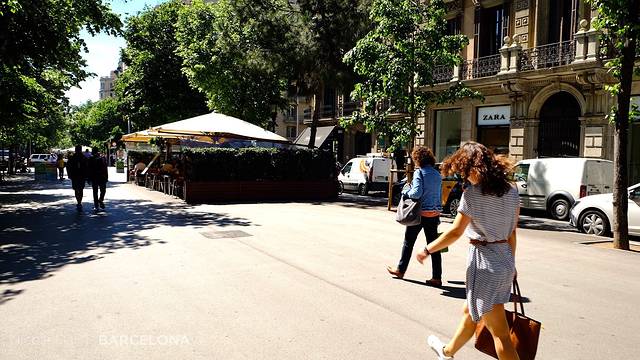 兰布拉大道有点像国内的步行街,格拉西亚大道则是人行道在中间,有露天餐厅,有树荫,有座椅。机动车和自行车道在两边。我和小王同学一致认为这样比较人性化哈哈哈...