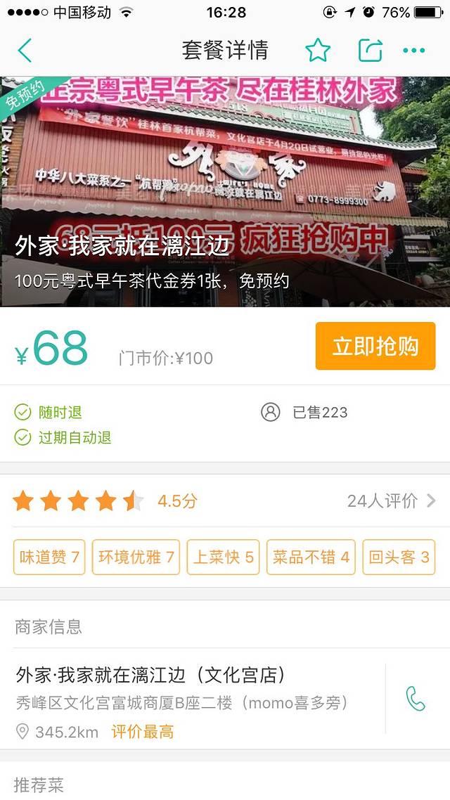 超级推荐这家餐厅!!!海鲜煲非常好吃😍团购价格便宜,量很足。而且也是离我住的酒店很近,步行5分钟即可到达