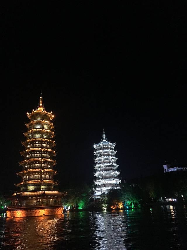 两江四湖是指桂林城内的漓江,桃花江和桂湖,榕湖,杉湖,木龙湖。两江四湖构成了桂林城的环城水系,也是桂林山水美景的重要组成部分,夜幕下的两江四湖更是灯火璀璨,流光溢彩。