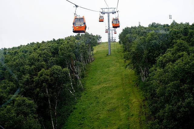 凝视着脚下那片野生白桦林,凝视着云雾中晃动的橘红色缆车,脑海里似乎隐隐地浮现出一幅画面,也是乘坐在缆车上,也是一片白桦林。所不同的是,上到2000米的高度看见了茫茫白雪,我恍然想起脑中尚存的这幅画面:欧洲大陆,瑞士阿尔卑斯山山脉的皮拉图斯山。