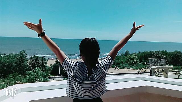 第二天就可以去下海啦 酒店的海景房一般都有个小阳台拍照超级很美 空气清新 海水透亮 不过一定要涂防晒霜呦
