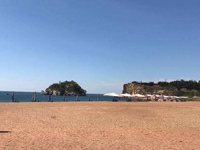 本想去大连周边的岛上玩一玩的,据说不但景色美,在渔家里不但包住还包吃,海鲜管够吃。可惜封海,金石滩港口不能登岛了,得去皮口港。我们只好改变计划去海边玩水。