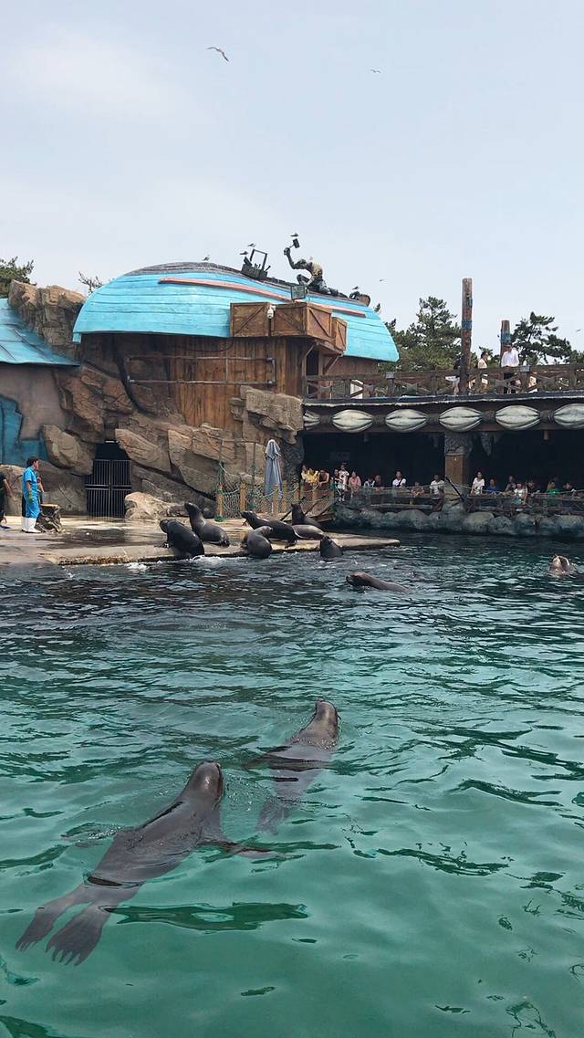 2.这个海洋公园里面有分为五个馆,珊瑚馆、鸟语林、极地馆、海兽馆、欢乐剧场,建议大家入园的时候拿一张游客指南,看准演出的时间。由于大部分表演场地都是露天的,里面太热,人还多,需要提前进场等待才能看下一场演出,我家小妞太小根本没有耐心等待,所以我们一场演出也没看,不过据说演出还是很精彩的。