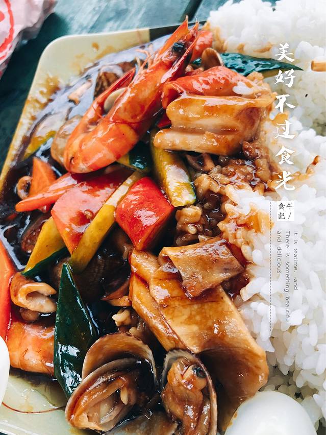 饿了,中午就在景区里解决,大连海鲜饭意外的好吃😋